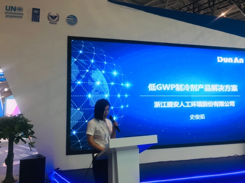 8月20日,盾安環境技術中心資深專家史俊茹在“臭氧氣候技術路演和論壇”發表主題演講《低GWP制冷劑產品解決方案》,介紹盾安在更低GWP、高效節能替代技術的最新應用成果和解決方案。